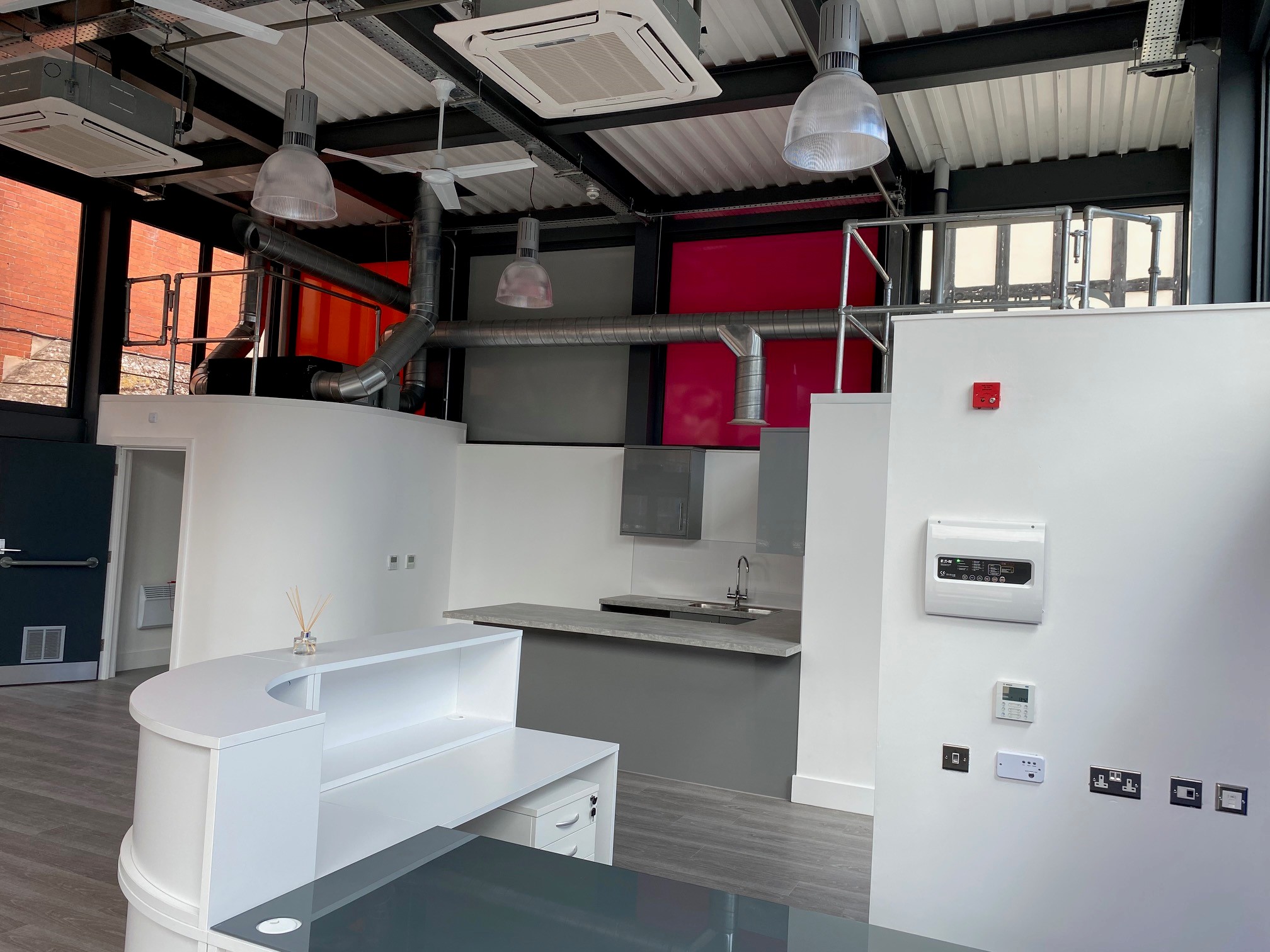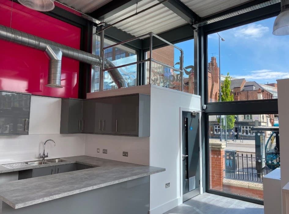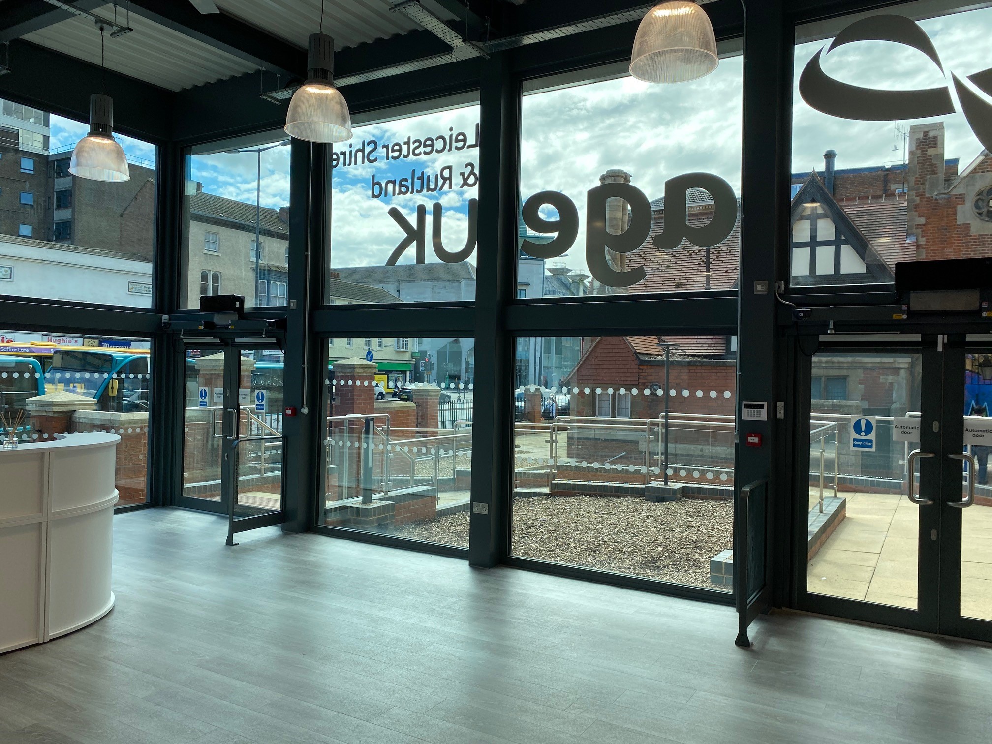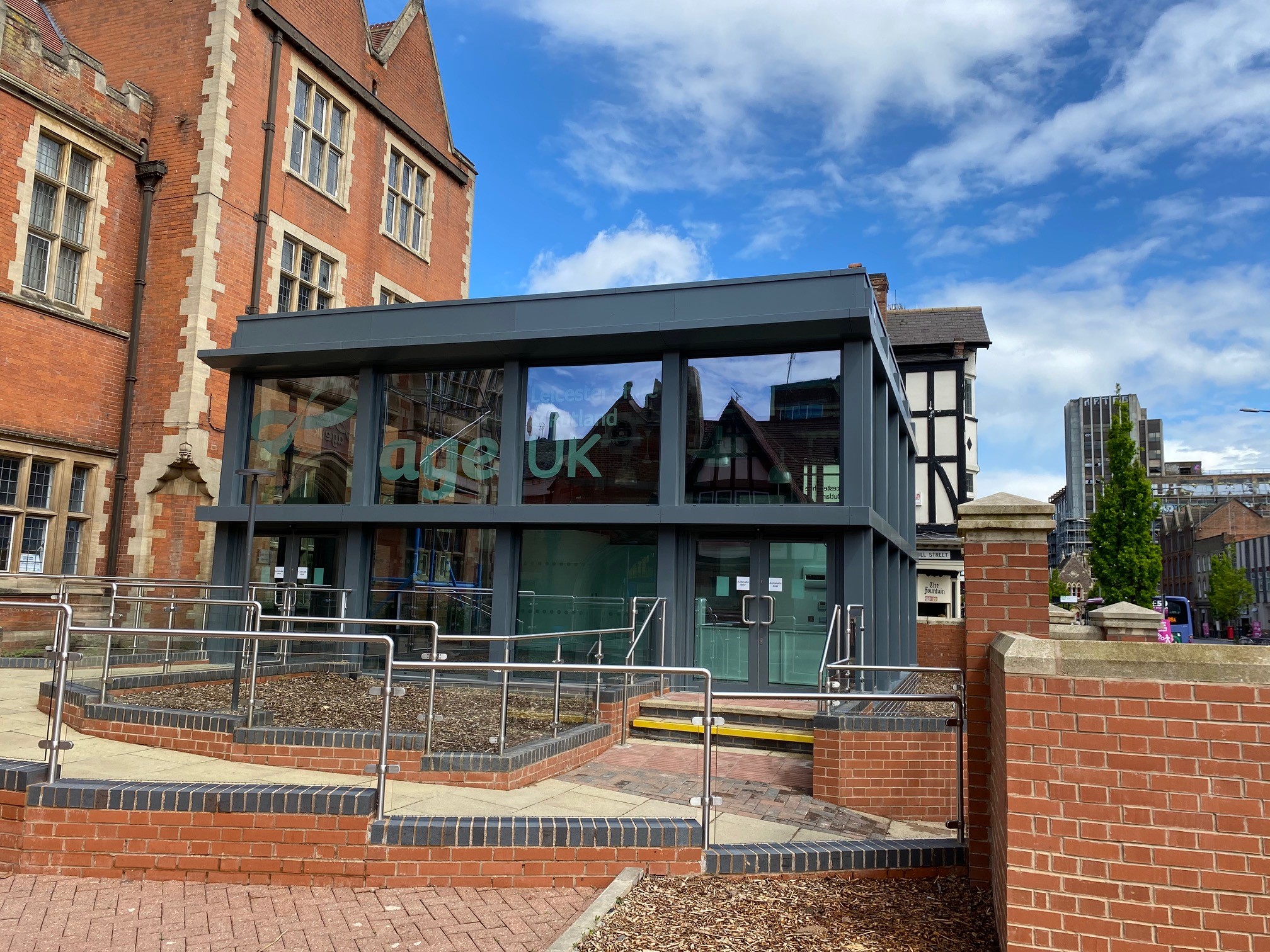 Clarence House - A prestigious award nominated Design and Build project for Age UK in Leicester. This is an ultra-modern glass box Information Hub, within the confines of a tight grade two listed city centre site.