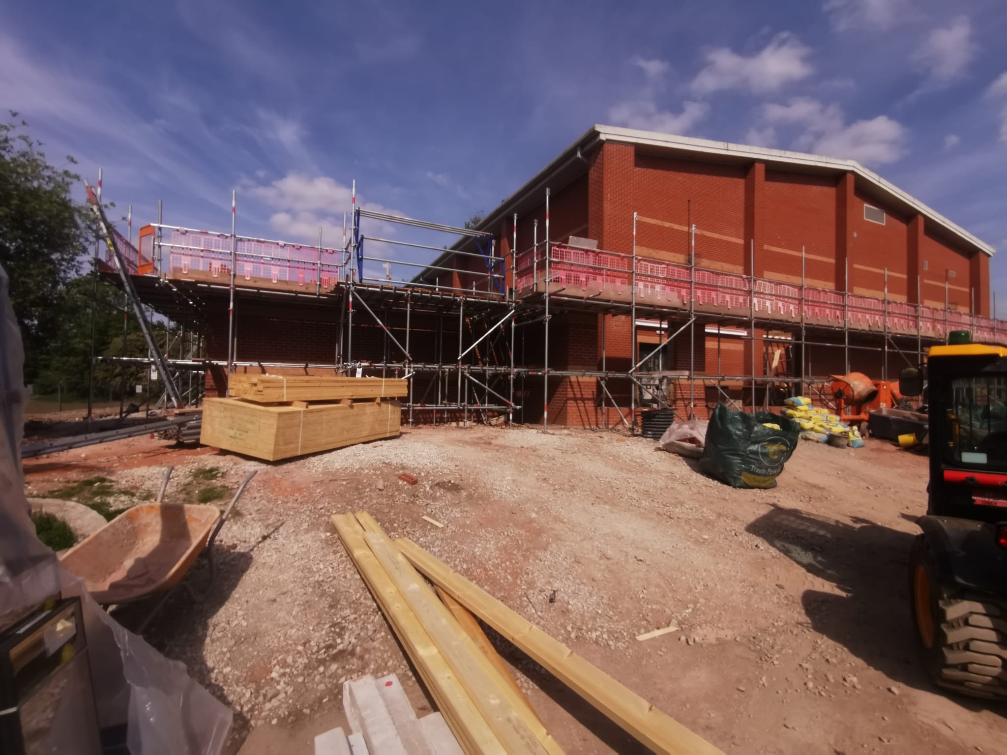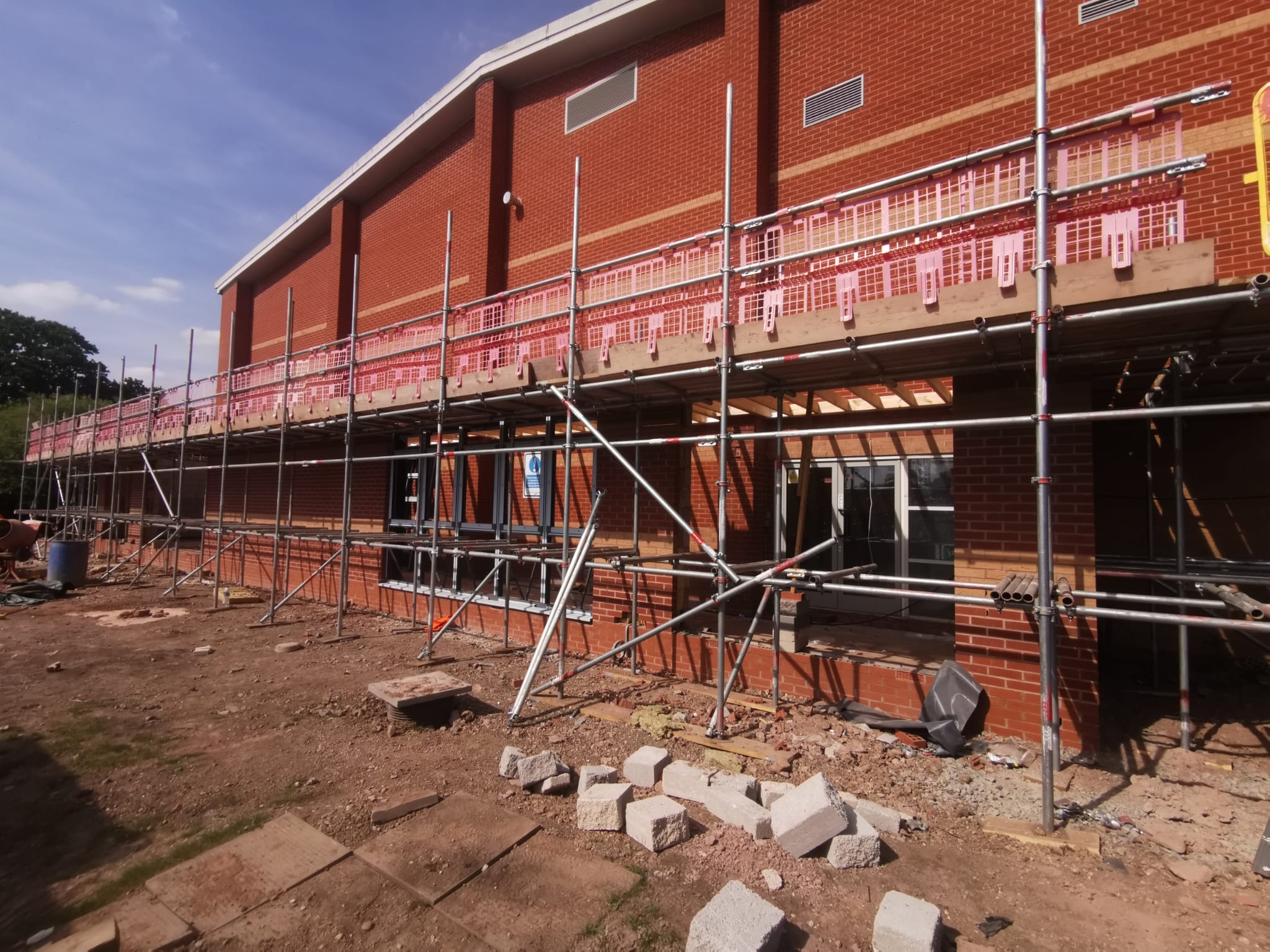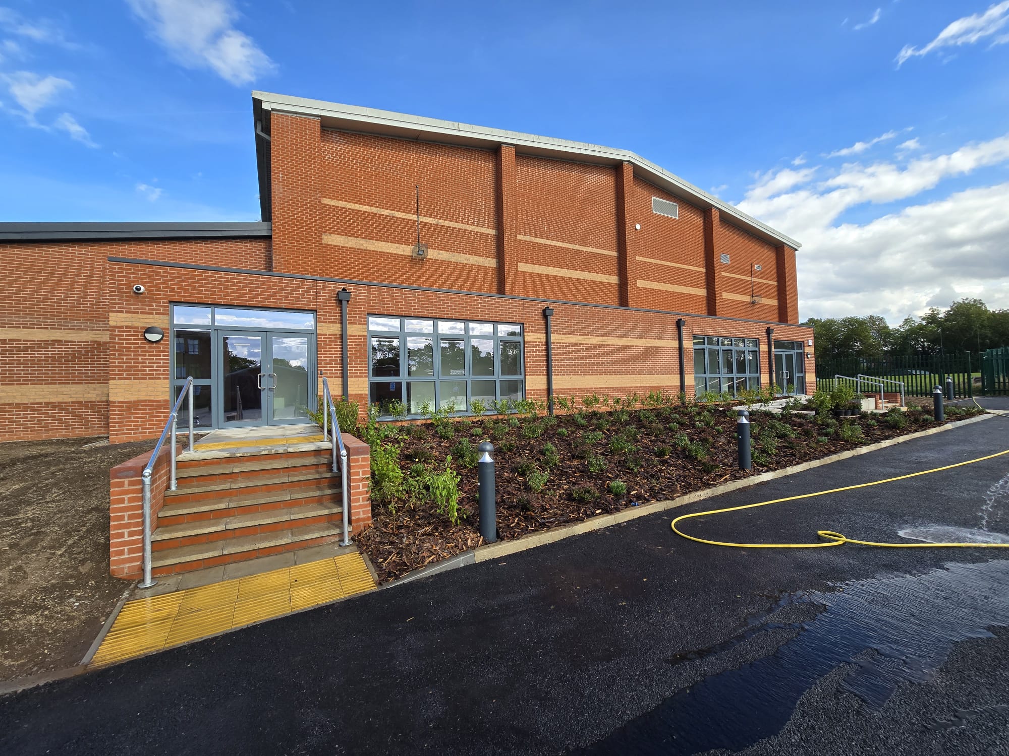 An impressive wrap round single-storey extension and access corridor to the existing sports hall. This created a further two interconnecting classrooms and large store.